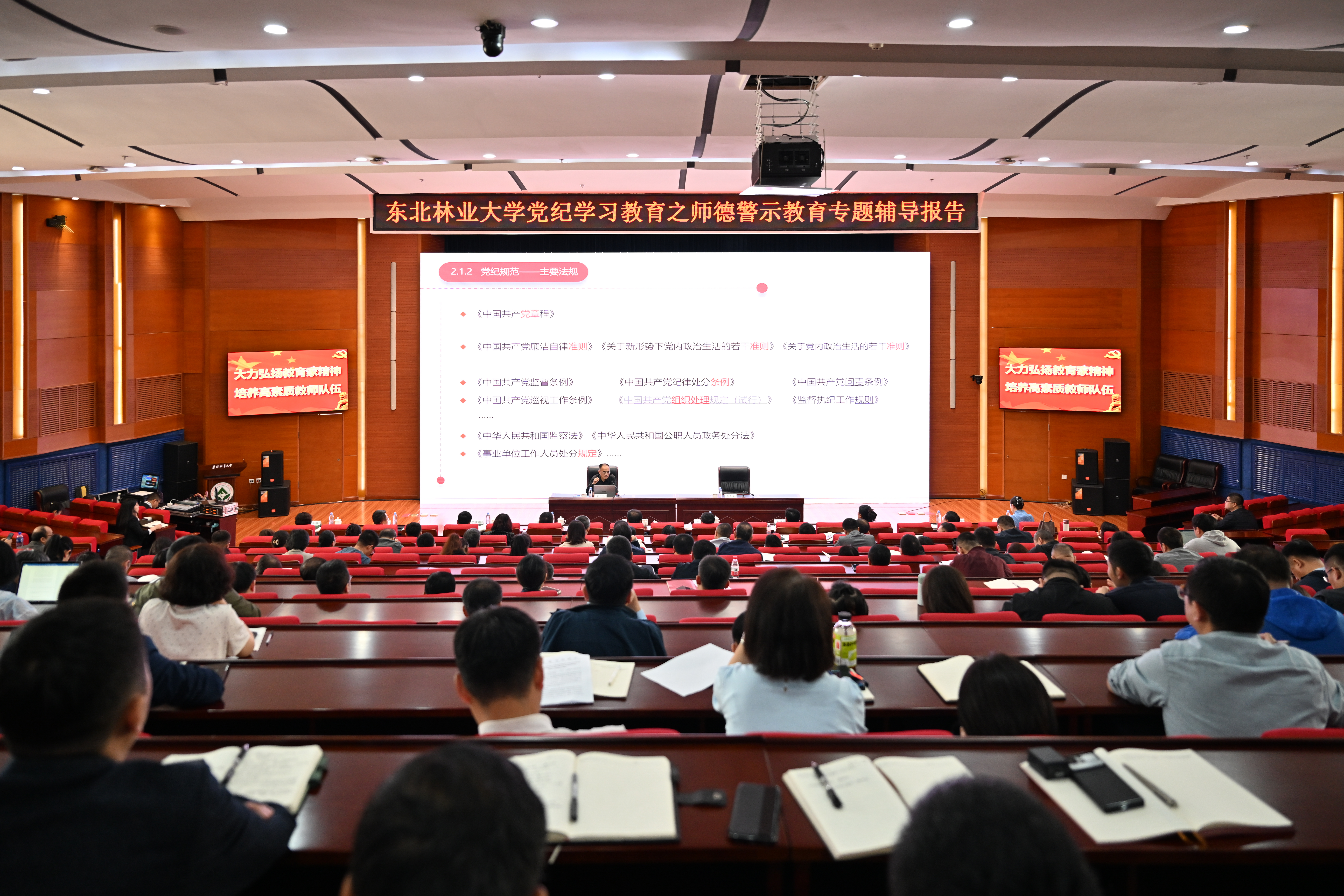 为进一步贯彻落实习近平总书记关于教育强国建设重要论述,扎实推进党纪学习教育,5月29上午,学校邀请中国政法大学彭祥林教授来校,为学校干部党员教师作了题为《做为学为事为人的大先生》的专题辅导报告。学校党委理论学习中心组成员,全体中层干部,各学院师德师风建设领导小组成员、专业负责人、学科带头人以及全体政工干部参加了报告会。学校党委常委、党委宣传部部长、党委教师工作部部长李春英主持报告会。报告中,彭祥林...