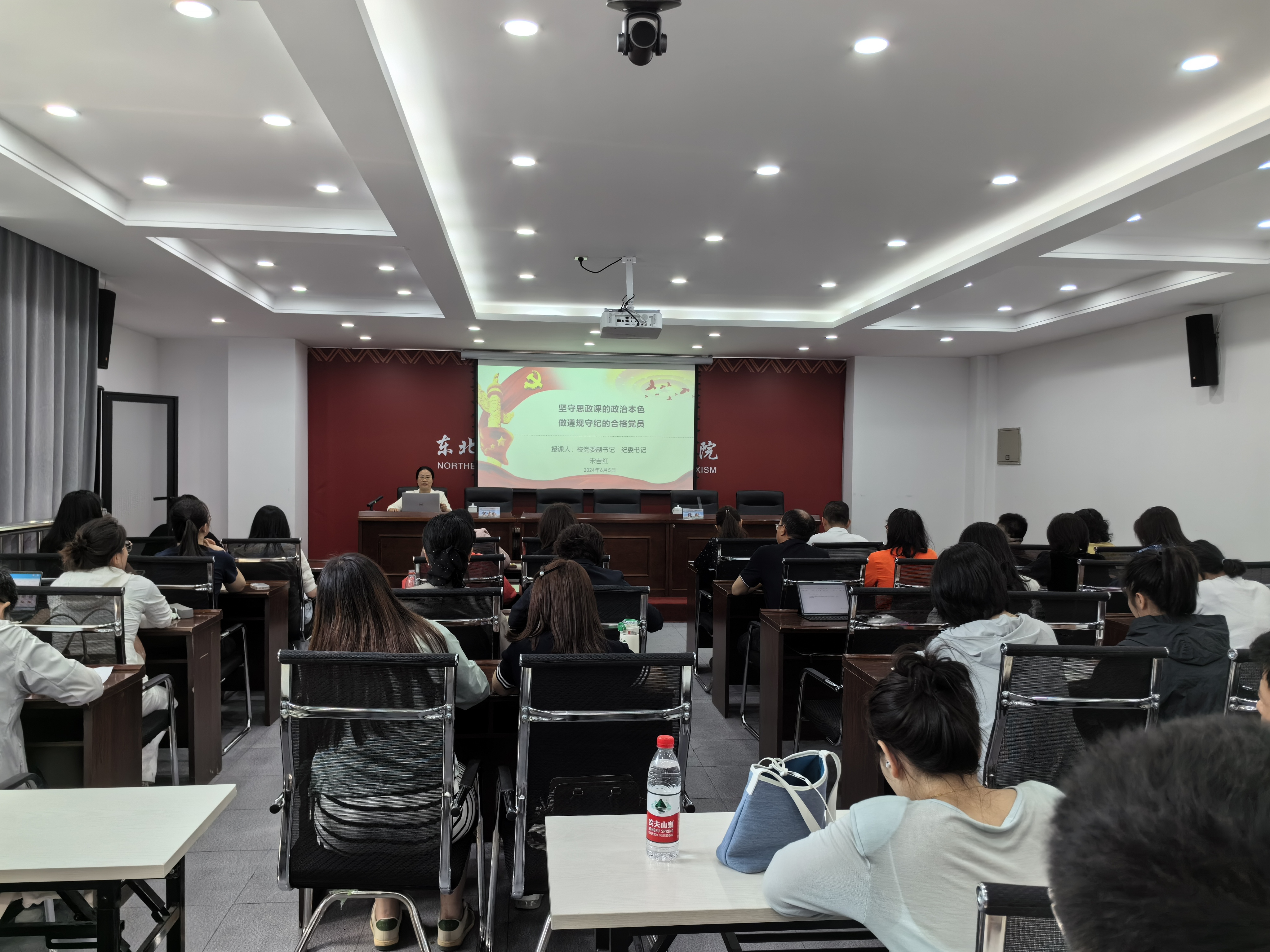 为持续提升党纪学习教育质效,引领带动思政课教师进一步提高政治站位,深化理论认识,做到学纪、知纪、明纪、守纪,近日,马克思主义学院邀请学校党委副书记、纪委书记宋吉红作党纪学习教育专题讲座。讲座由马克思主义学院副院长张妍主持,学院全体教师及学生党员参加讲座。宋吉红以《坚守思政课的政治本色,做遵规守纪的合格党员》为主题,结合党的纪律建设成就与经验,《中国共产党纪律处分条例》历史沿革,围绕政治纪律、组....