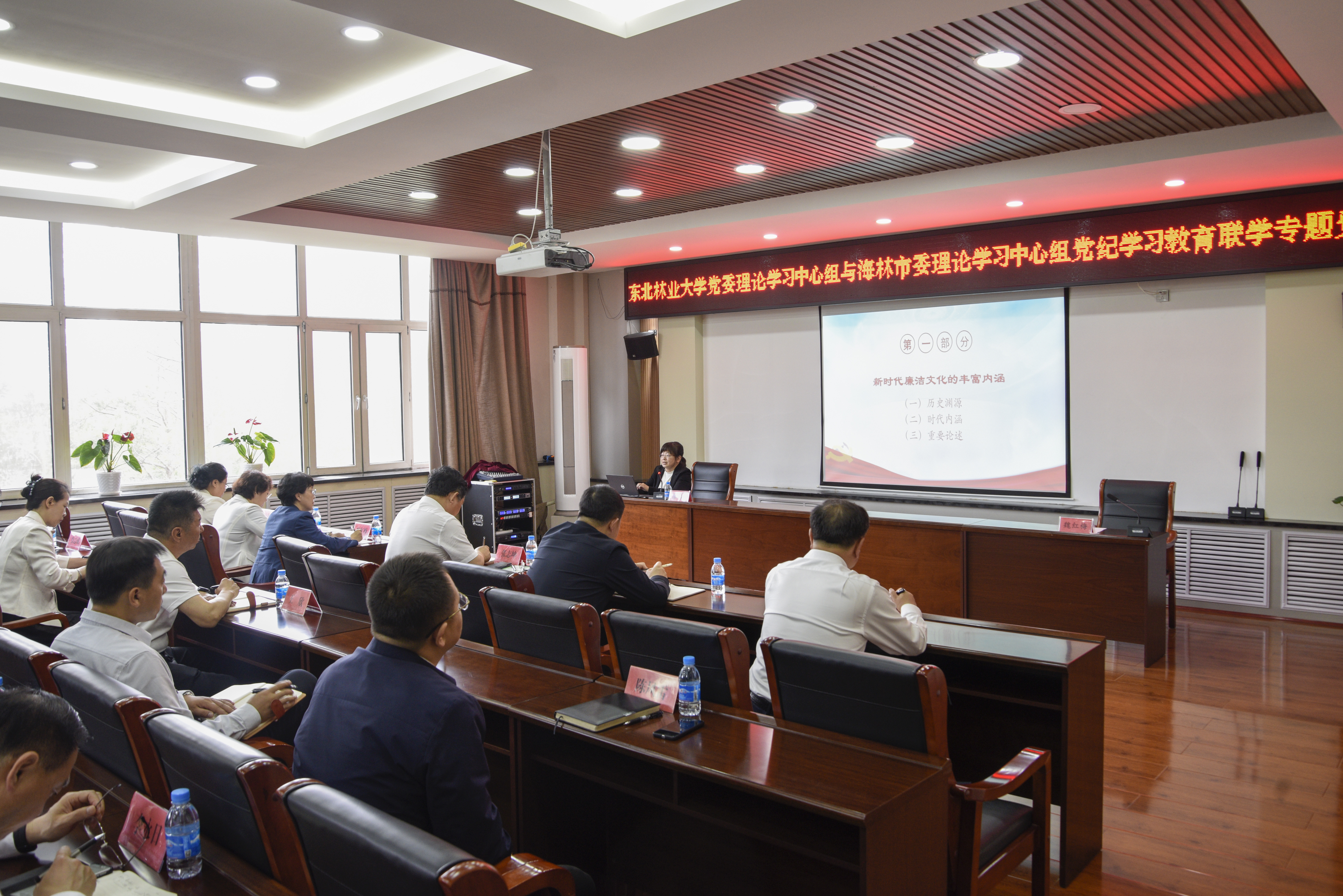 6月14日,学校党委理论学习中心组与海林市委理论学习中心组举行党纪学习教育联学。牡丹江市委党校党史党建教研部主任李颖教授讲座《加强新时代廉洁文化建设》专题党课。党委书记张志坤,党委副书记陈文慧,党委常委、副校长孙猛,党委副书记、纪委书记宋吉红,海林市委书记魏红梅,海林市委副书记、市长张洪蓬,海林市人大常委会主任王欣,海林市政协主席赵立群,海林市委副书记付晓东与海林市副市级以上领导、东北林业大学部分...
