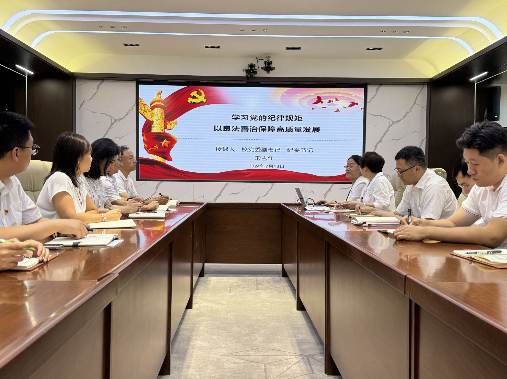 为持续推动党纪学习教育有序、深入开展,着力锻造出一支忠诚干净担当的教育教学管理队伍,7月18日下午,本科生院党支部联合人事处党支部开展党纪学习教育专题党课。此次党课邀请到学校党委副书记、纪委书记宋吉红进行讲授。本科生院党支部书记张佳薇主持。宋吉红以《学习党的纪律规矩,以良法善治保障高质量发展》为题,利用丰富经验和深刻见解,结合历史维度、鲜活案例及精准数据,从“学习党的纪律建设经验,增强全面从严的纪...